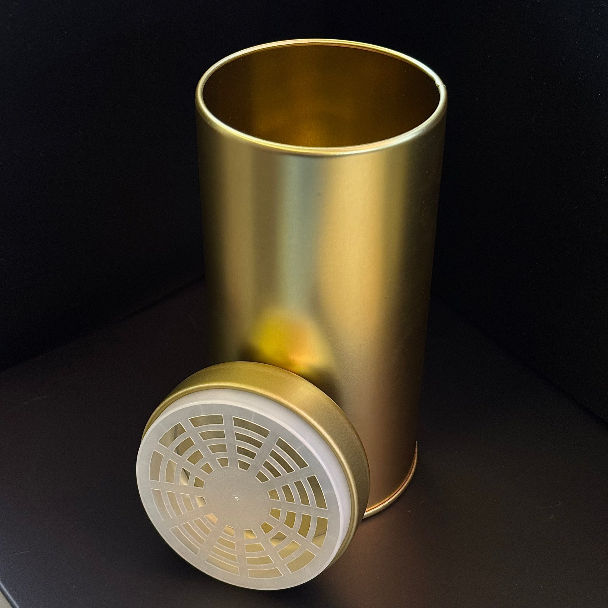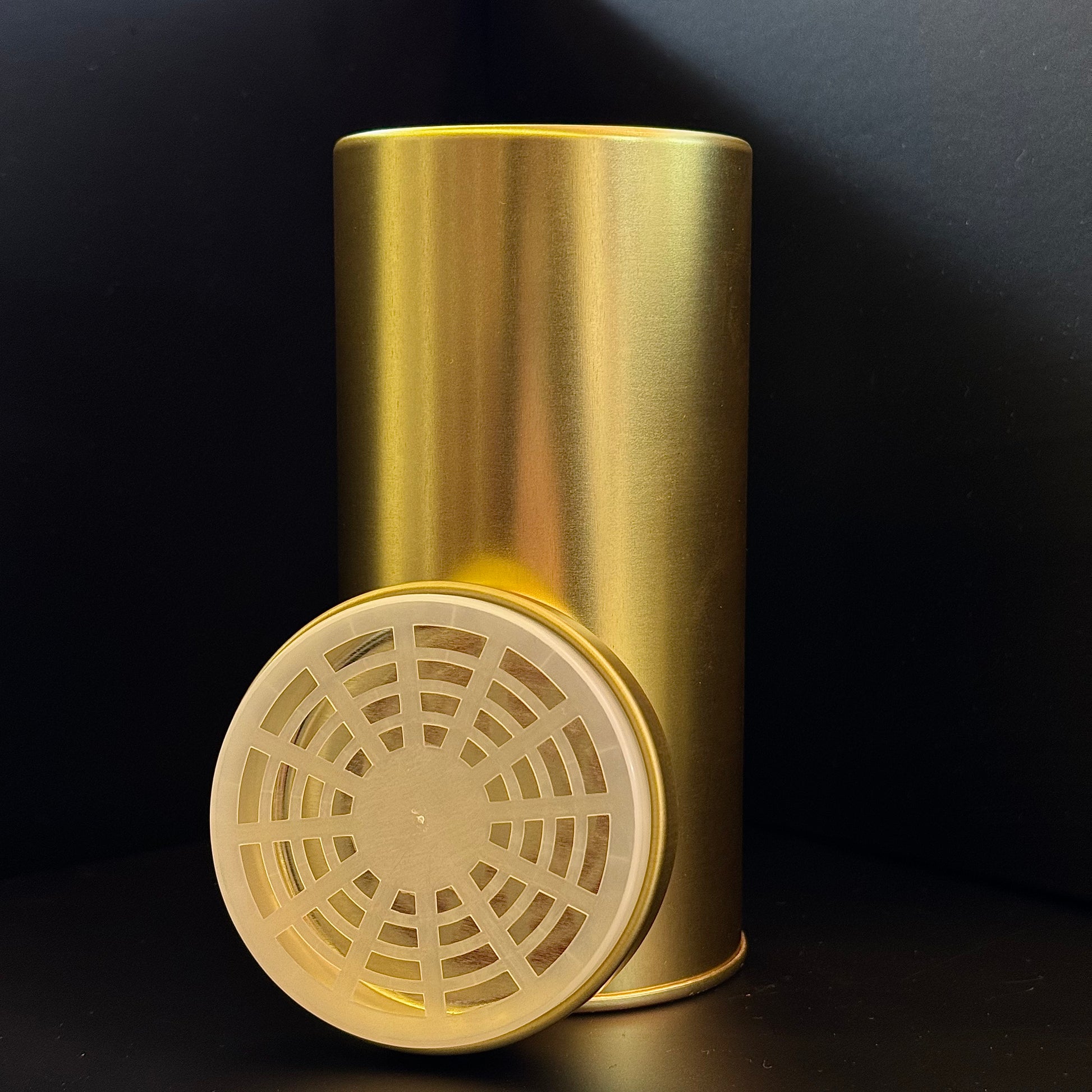 Boîte de conservation pour thé – Doré métallisé (≈100 g)